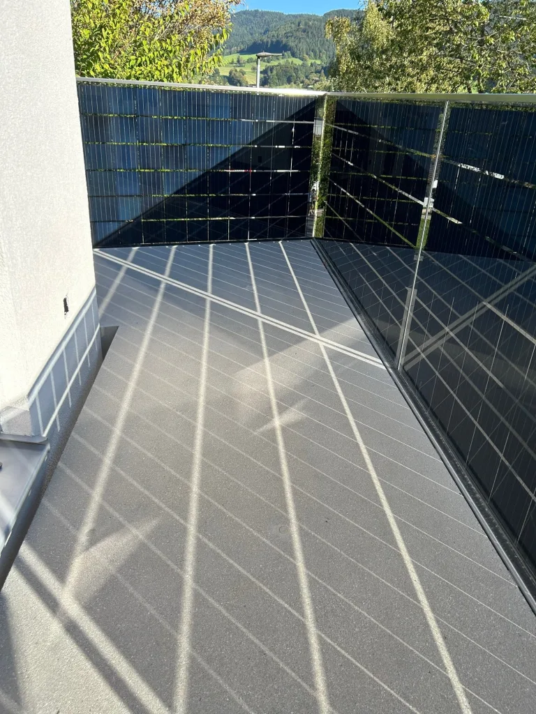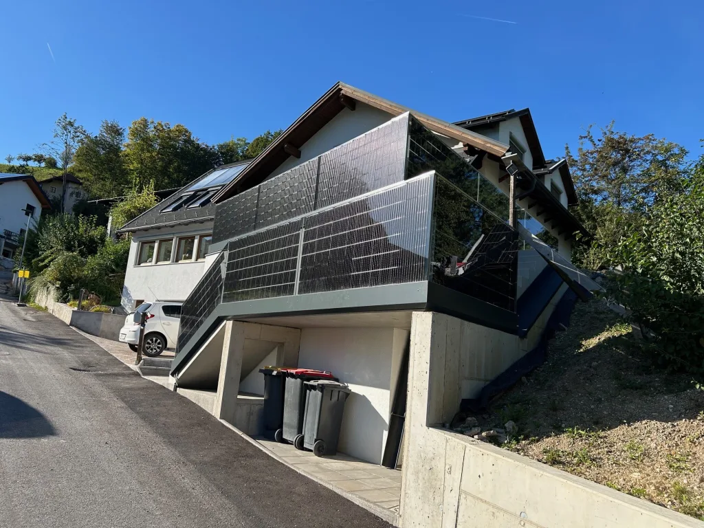 Intellikom Energy freut sich, über die Realisierung einer besonders durchdachten Photovoltaiklösung im niederösterreichischen Gresten zu berichten. In enger Abstimmung mit dem ausführenden Glasbaubetrieb entstand eine hochwertige Kombination aus dachmontierten PV-Modulen und beidseitig aktiven Glas-Glas-Modulen im Bereich der Balkonverglasung und des Stiegenaufgangs – präzise gefertigt, technisch anspruchsvoll umgesetzt und optisch nahtlos in die bestehende Architektur eingebunden. 🌿☀️