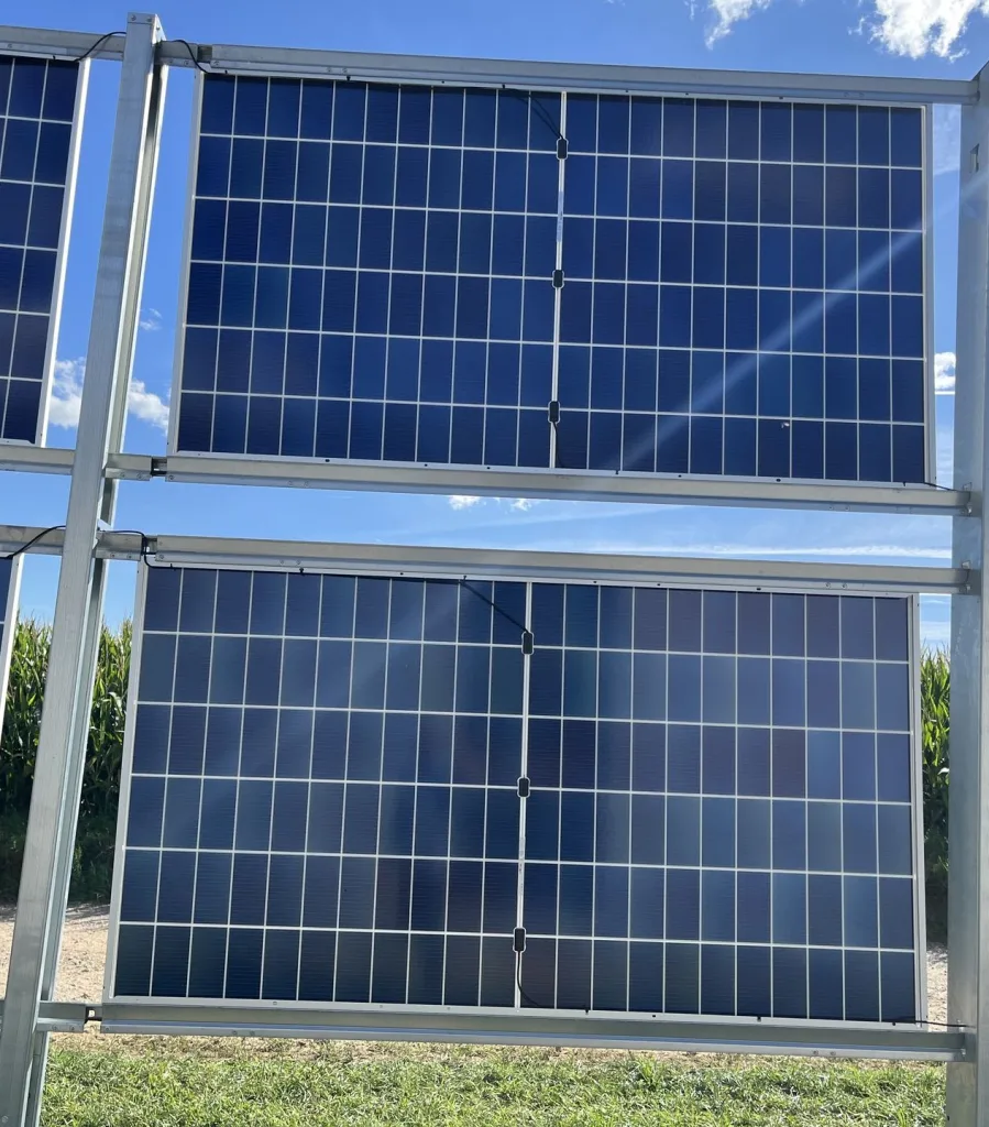Alle Module sind in vertikaler Orientierung montiert, was den Eigenverschattungsgrad minimiert und gleichzeitig die bifaciale Nutzung optimiert.